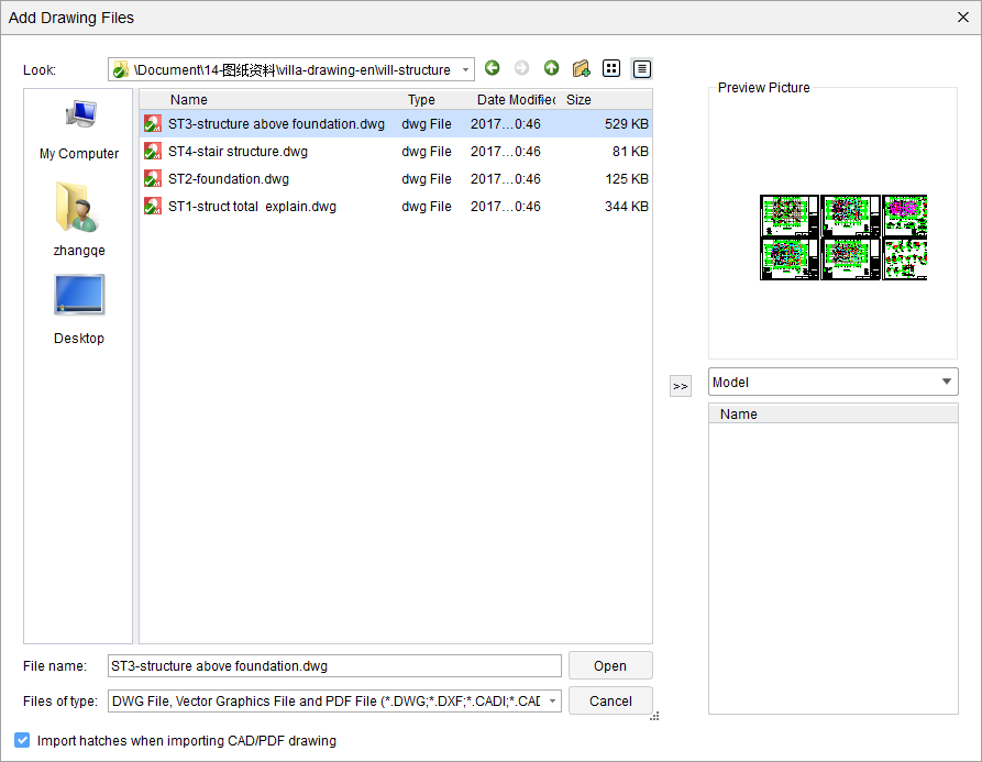 (2) Select multiple drawings to import simultaneously.